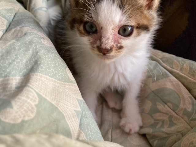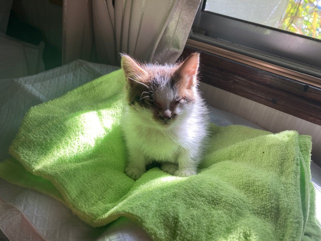 前回、腫れた両目のまぶたがくっついて目がまったく見えない状態で保護したところ。