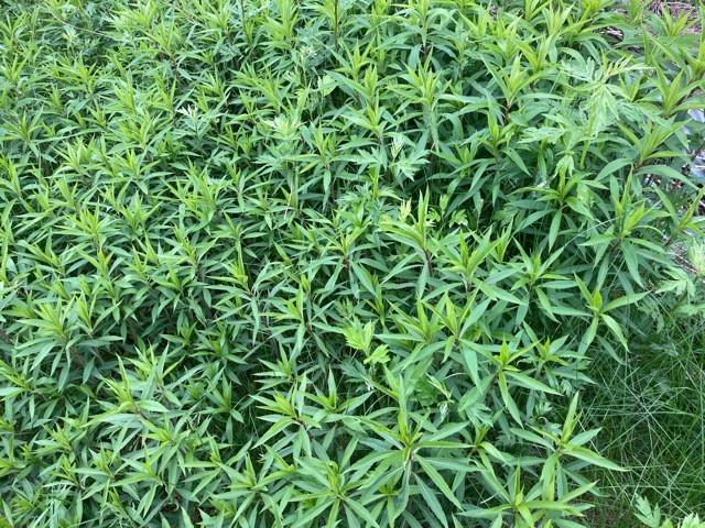 ウチの敷地内に群落を作っていて、花はセイタカアワダチソウそっくりでキレイ(花粉に過敏な人は悪魔に見えるだろうけど)。しかし咲く時期が早い。